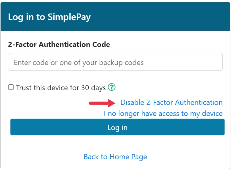 2. Under 2-Factor Authentication, click on Enable 2-Factor Authentication, and enter your SimplePay password.
